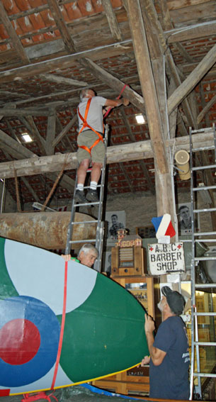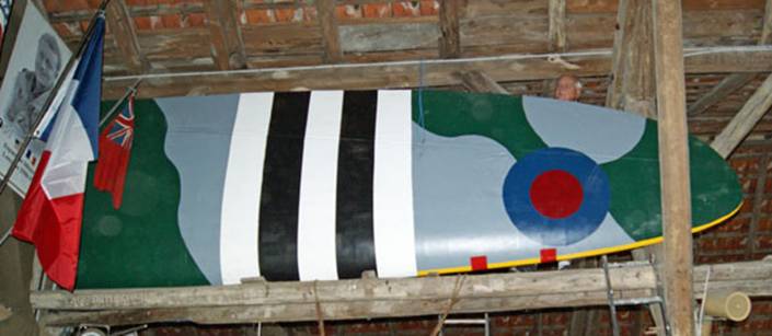 c’est une autre action de sauvegarde qui vient de s’achever : l’aile d’avion entoilée récupérée et sauvée de la destruction par Christian Pardieu vient de trouver sa place dans l’Espace de Mémoire,