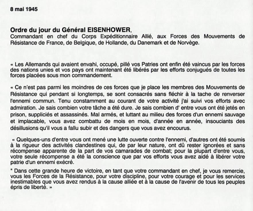 Commandant en chef des troupes alliées, adressé aux mouvements de Résistance