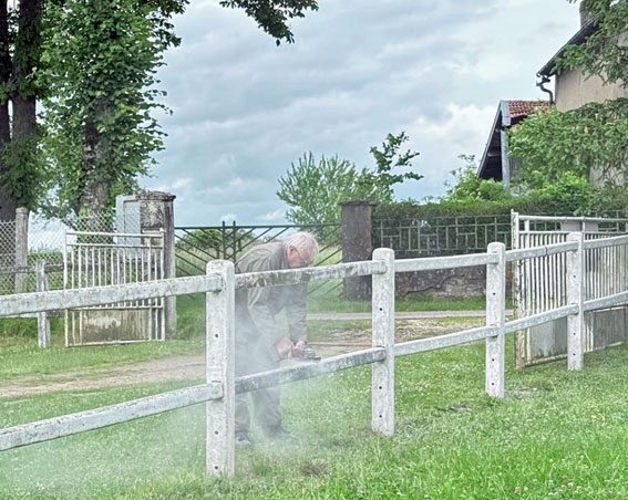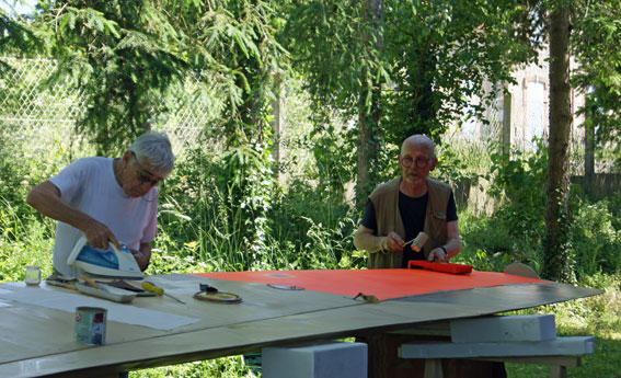 ![]() A l’initiative de ce chantier ! Dominique et Paul qui ont déjà commencé à peindre les lisses en ciment préparées par Patrick |