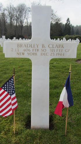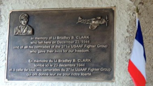 Bradley Clark, tombé le lendemain de son arrivée, sera malheureusement le premier pilote du 371ème Fighter Group qui ne rejoindra pas le terrain de Tantonville au retour d’une mission.