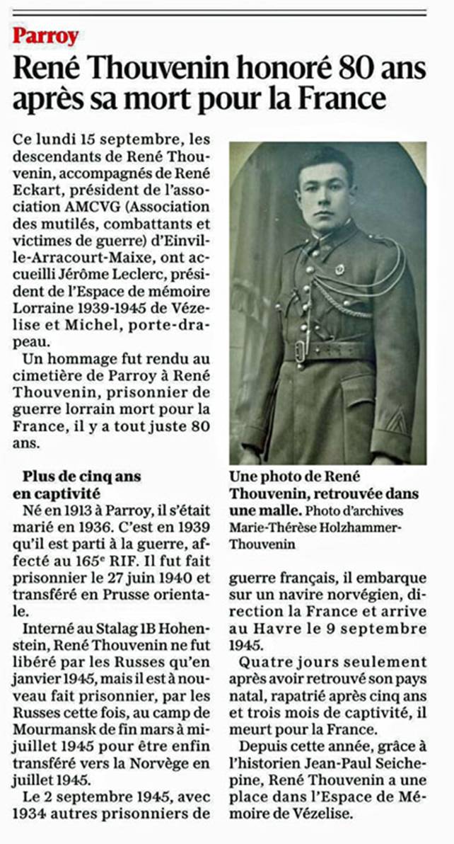 - et enfin, un grand merci à Marie Holzhammer-Thouvenin, nièce de René Thouvenin, pour son accueil et pour avoir retrouvé cette photo qui a permis de mettre un visage sur ce nom,