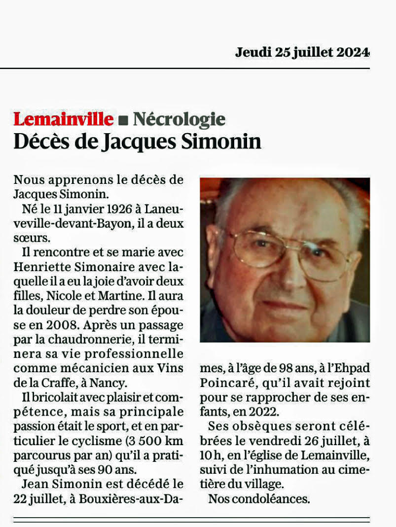 Jacques Simonin, dernier Maquisard du GL 42 parti il y a un an