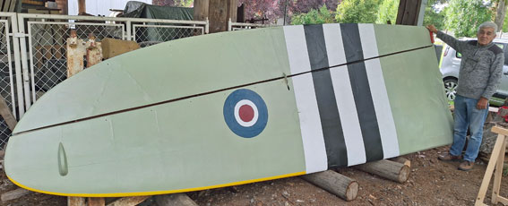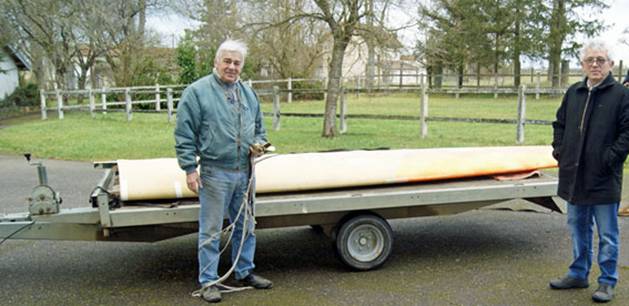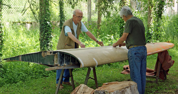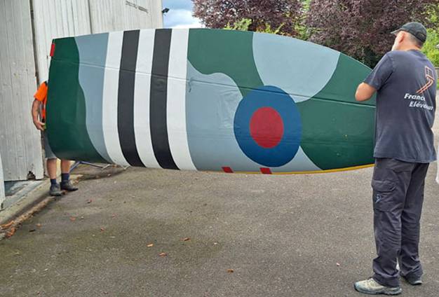 c’est une autre action de sauvegarde qui vient de s’achever : l’aile d’avion entoilée récupérée et sauvée de la destruction par Christian Pardieu vient de trouver sa place dans l’Espace de Mémoire,