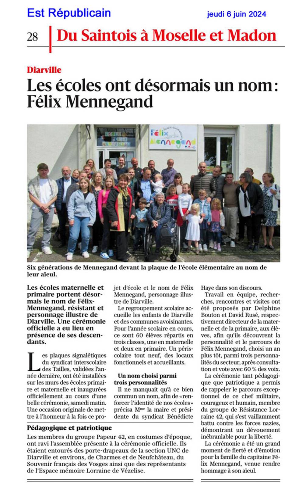 Diarville les écoles "baptisées" officiellement « Félix Mennegand » |