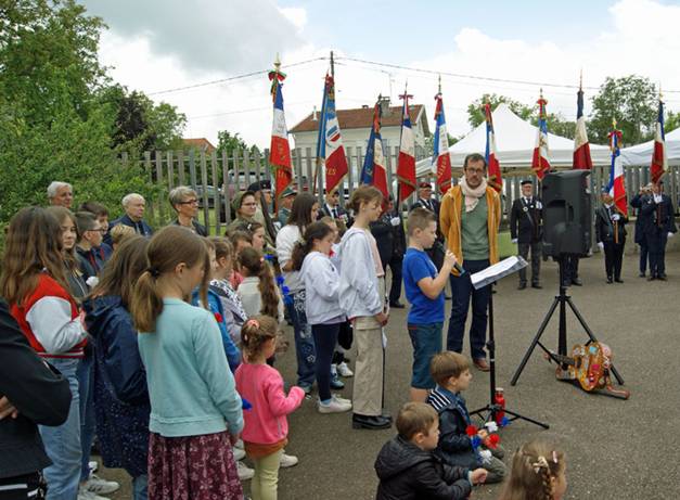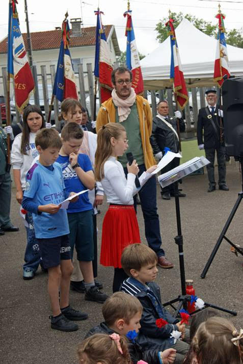 Sous la direction de leurs enseignants, la prestation exceptionnelle des élèves de Diarville qui ont interprété le Chant des Partisans, la Marseillaise, et lu le portrait de Félix Mennegand rédigé en 1946 par Jean Ville-Albert. |