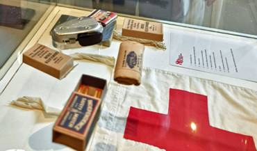 ![]() 4 vitrines dans lesquelles étaient exposées des pièces prêtées par l'Espace de Mémoire complétaient la présentation de la fresque restaurée. |