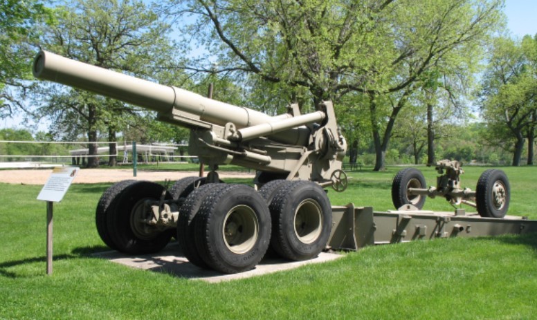 Obusier américain de 8 pouces (203 mm) Poids de l’obus : 90 kg Portée 16 km 600