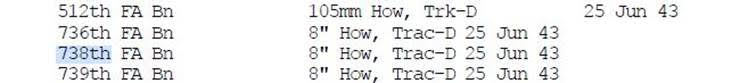 Le 738th FA Bn créé le 25 juin 1943, équipé d’obusiers de « 8 pouces », s’est illustré dans les environs de Lunéville en septembre 1944 |