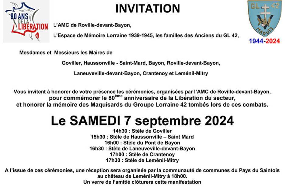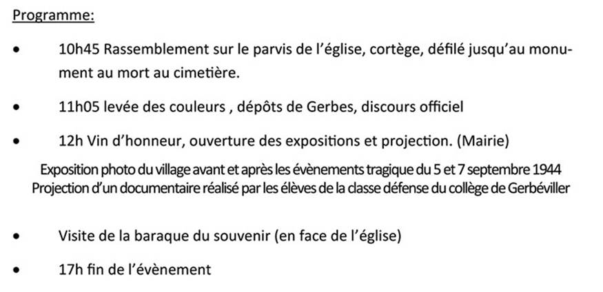 Programme des cérémonies d’Arracourt (samedi 21 et dimanche 22 septembre)