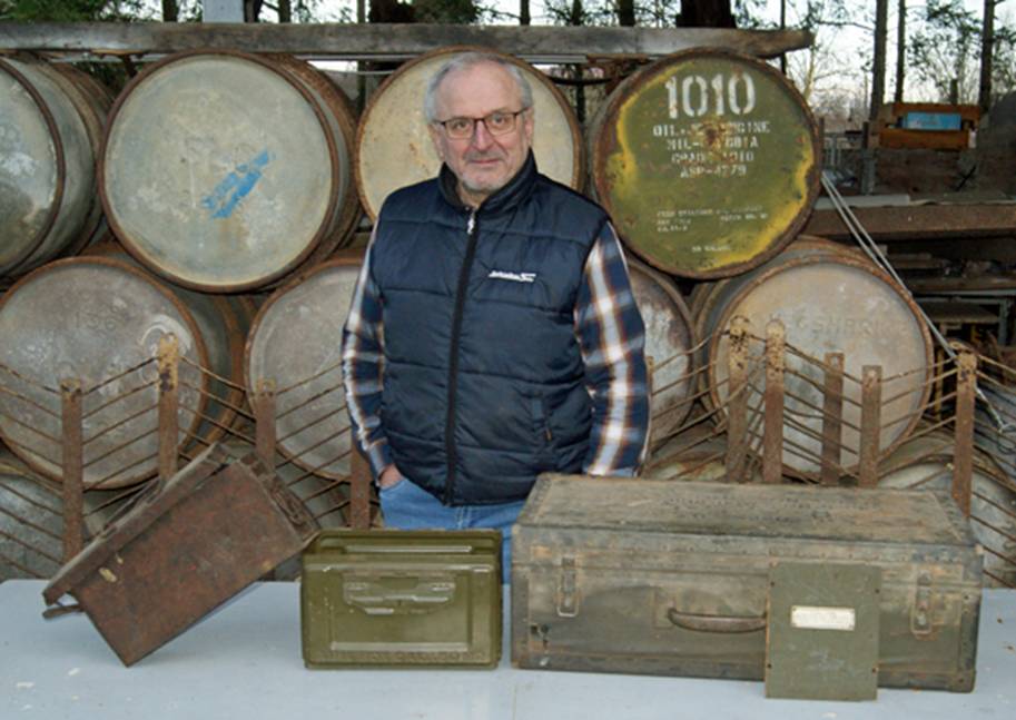 Merci à Marco BONETTI venu partager un petit bonjour et offrir ce lot de caisses US et allemandes | Merci à Gabriel GUERIN, un ami de Serge PLOUSSARD qui lui avait confié la mission de venir déposer ces gamelle et boite médicale US offertes à l’association … Mission accomplie pour Serge ! | |