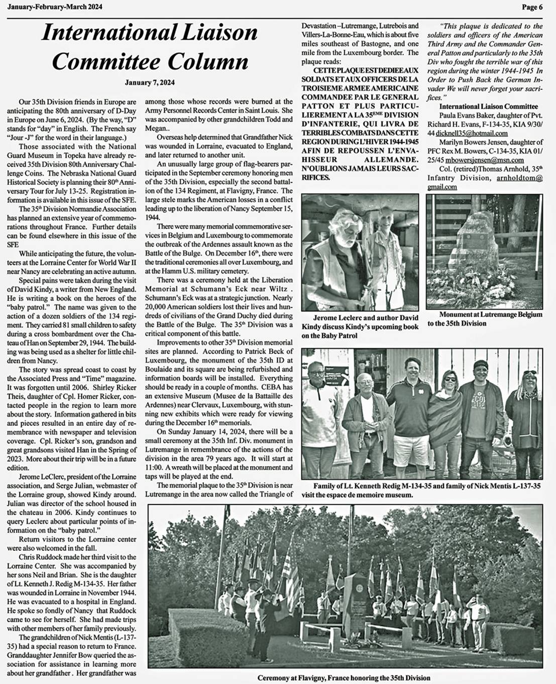 Vous trouverez ci-dessous la page 6 du numéro du 1er trimestre 2024 du Santa Fe Express, le journal de l’association de la 35ème division d’infanterie américaine.