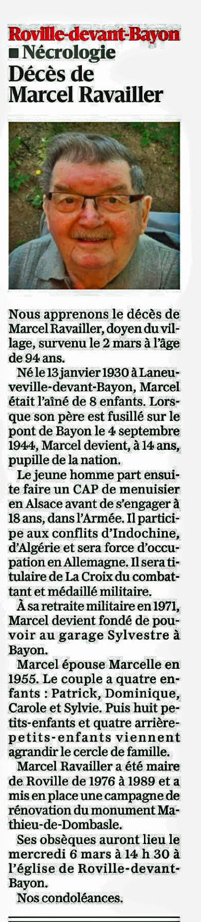 Disparition de Marcel RAVAILLER