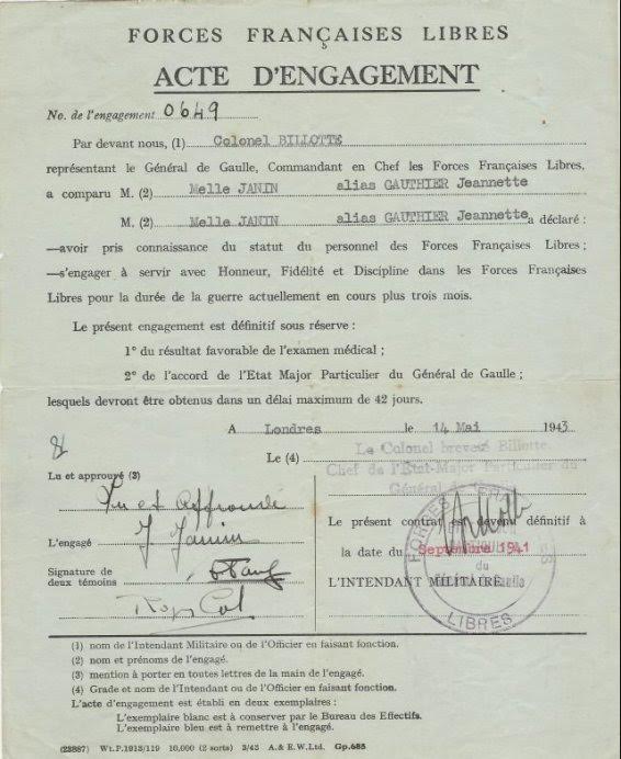 engagement Jeannette Guyot dans les FFL (Forces françaises libres) -