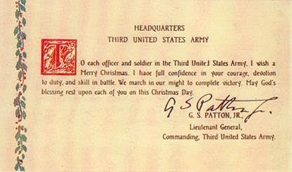 Bataille des Ardennes. Cette prière est bien souvent confondue avec une autre rédigée par Patton lors de la Bataille des Ardennes.![]() « Carnets secrets du Général Patton », Martin Blumenson, PLON 1975 |
