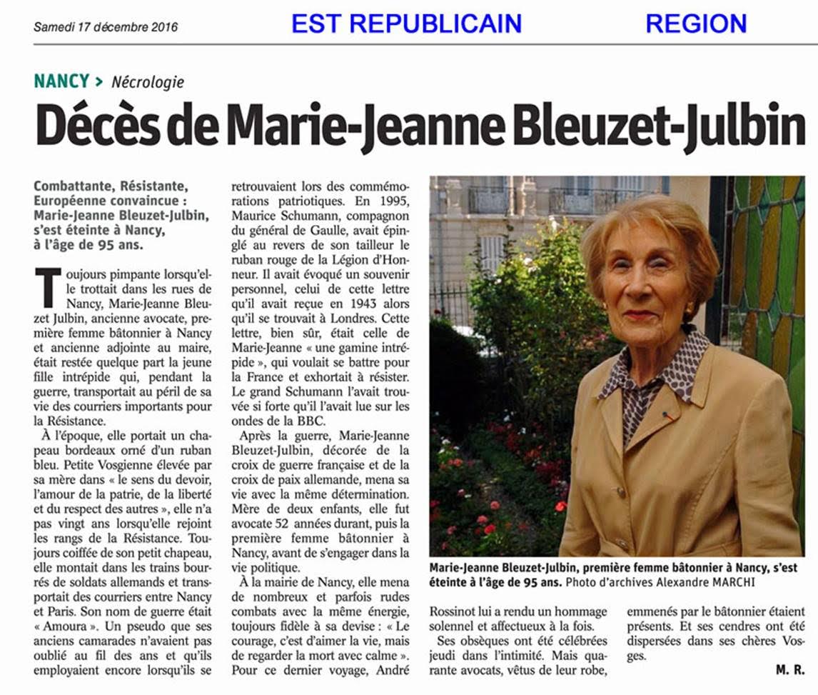 Disparition de Marie-Jeanne Bleuzet-Julbin