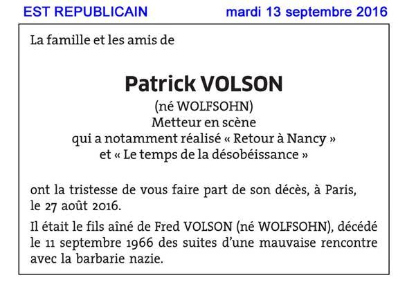 Patrick Volson vient de disparaître.
