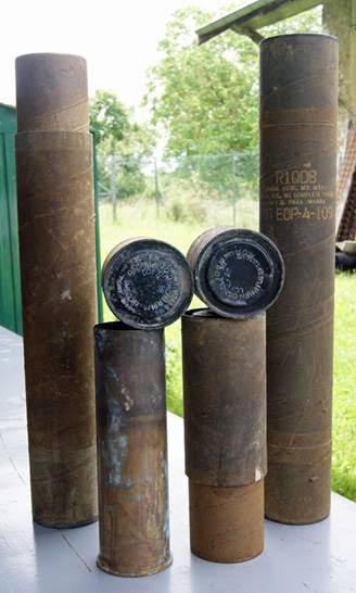 Présentés pour la première fois,ces étuis d’obus américains de 105 mm retrouvés par André Barbier sur son grenier à Benney