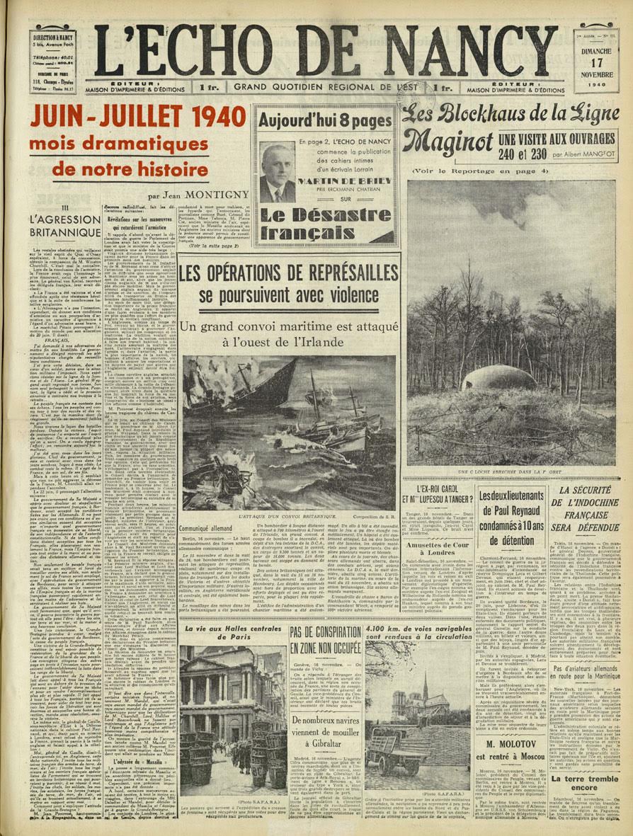 L’article, conservé très précieusement par Marcel, avait été publié le 17 novembre 1940 dans l’Echo de Nancy !