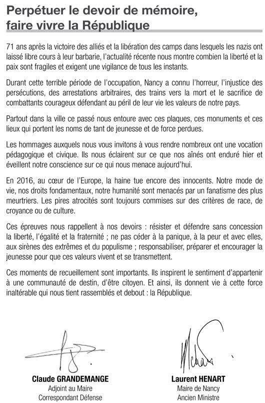 71ème anniversaire de la Libération des camps