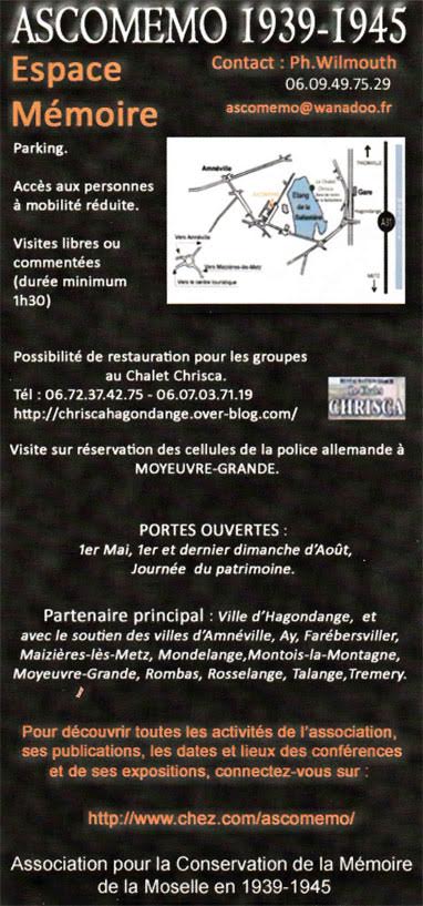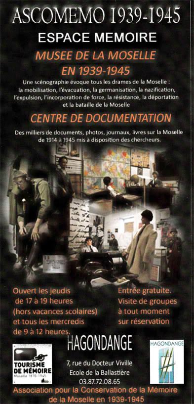 ASCOMEMO 1939-1945 qui anime le Musée de la Moselle en 1939-1945, implanté à Hagondange, voir ci-dessous et sur http://ascomemo.chez.com/