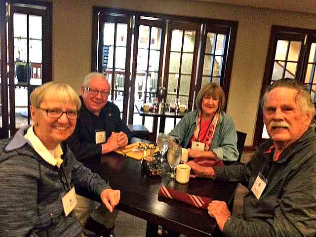 ![]() En attente du service, un bon moment pour une conversation en petit groupe . De gauche à droite : Roberta Russo, Ben Weber, Marilyn Jensen et Dave Jensen, son mari. |