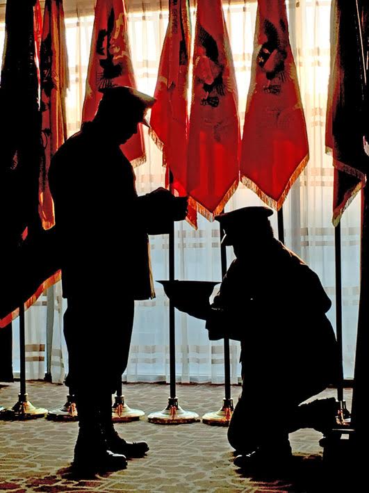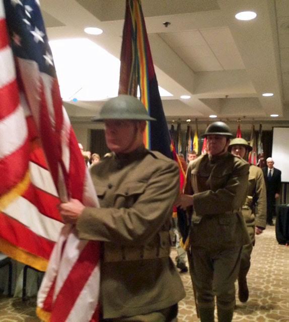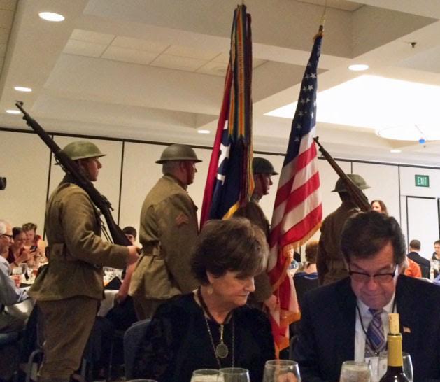 ![]() Le retrait des couleurs qui clôturait la 100ème réunion de la 35th Infantry Division à Kansas City. |