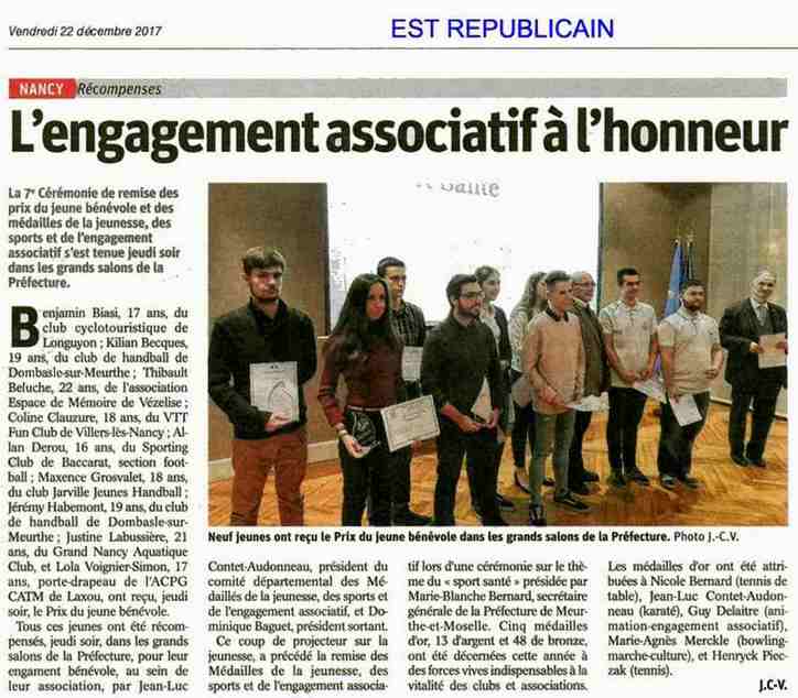 cérémonie, furent remis 9 diplômes à de jeunes bénévoles, des médailles