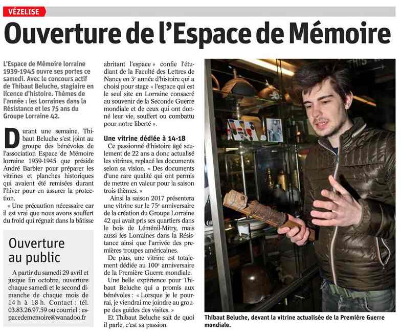 Nouvelle saison, nouvelle exposition 75ème anniversaire de la création du GL 42 des femmes lorraines dans la Résistance 75ème anniversaire des rafles de juillet 1942 des avions alliés tombés en Lorraine1917-2017 : 100ème anniversaire de l’arrivée des Américains 100ème anniversaire de la 35th Infantry Division US 100ème anniversaire des plaques de Velle |