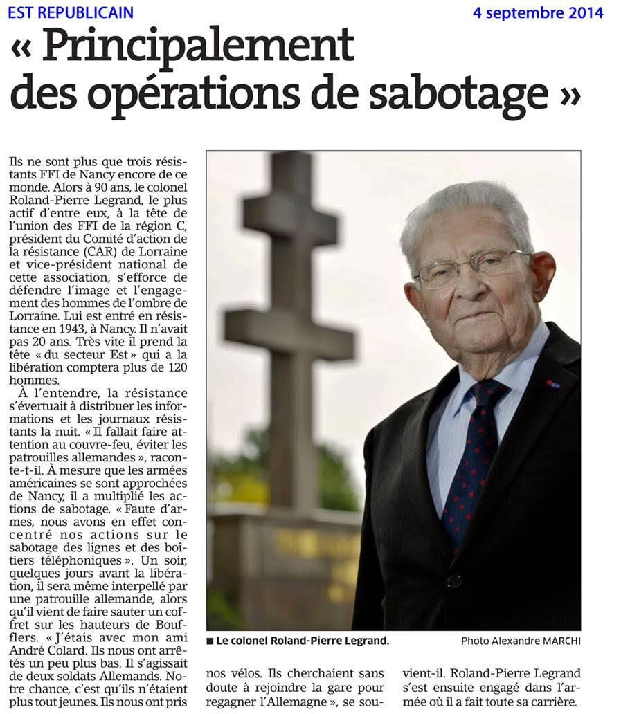 Nous avons appris le décès, à l’âge de 94 ans, du colonel Roland Legrand, alias Lenoir dans la Résistance.