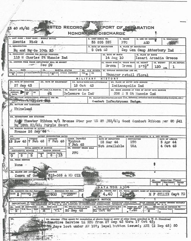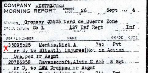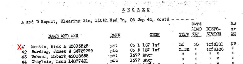 le numéro matricule est le bon, le 16 septembre 1944 Nick Mentis est