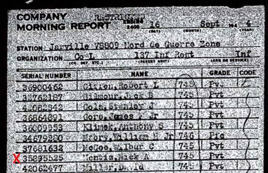 16 septembre 1944 : affecté dans la compagnie L du 137th Infantry Regiment