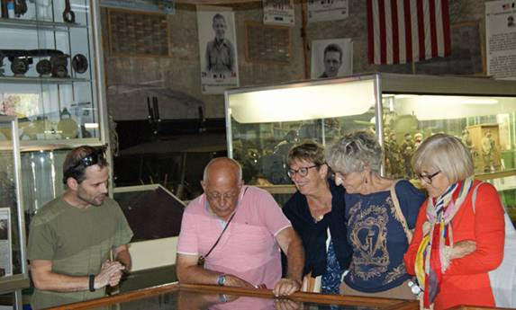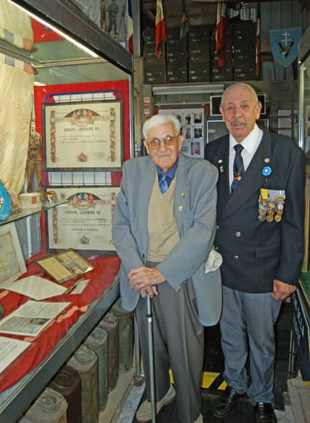 Devant l’une des vitrines dédiées au GL 42,Marcel Louis, ancien Maquisard et son fils