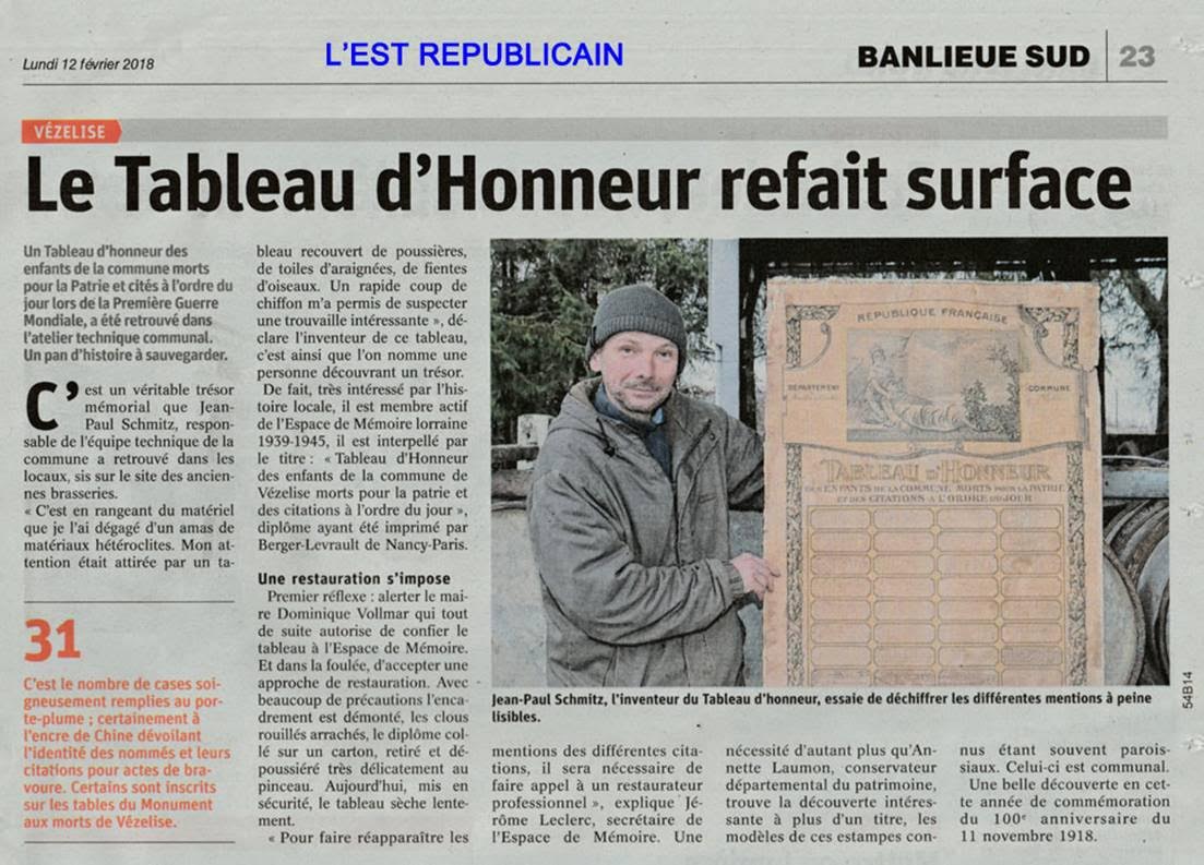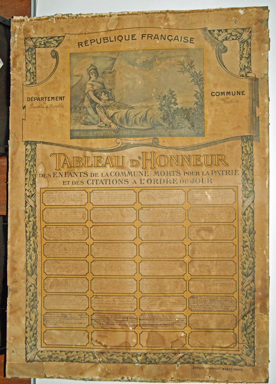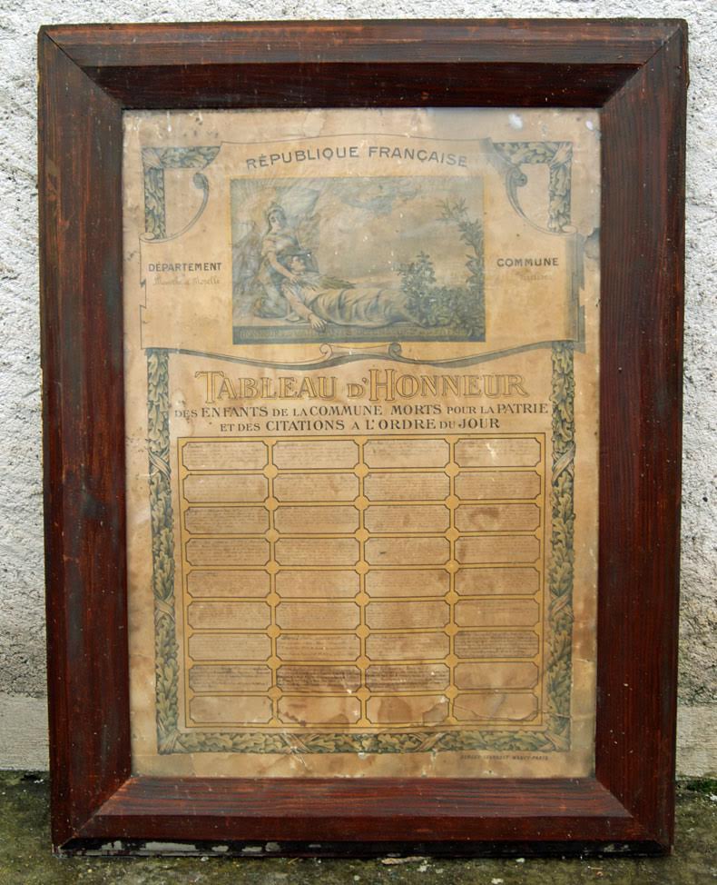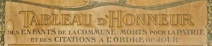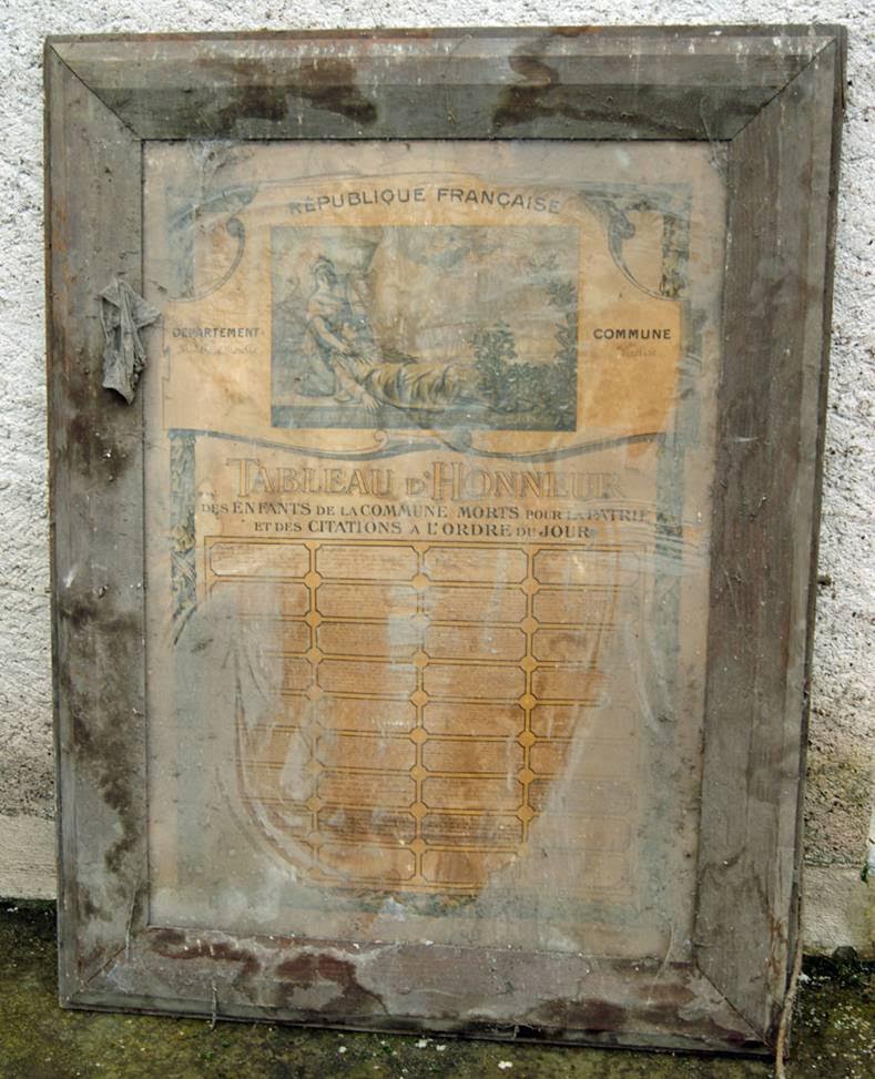 ![]() Un grand merci à Annette LAUMON, Conservateur départemental du patrimoine, pour son avis sur l’importance du Tableau d’Honneur trouvé par notre ami Jean-Paul.