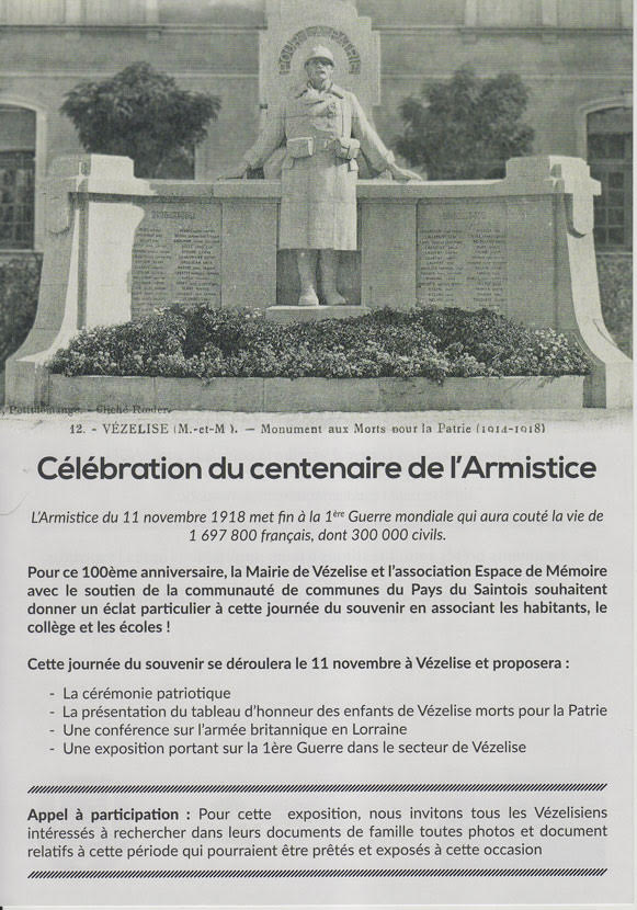 centenaire de l’Armistice du 11 novembre 1918 sera organisée par la