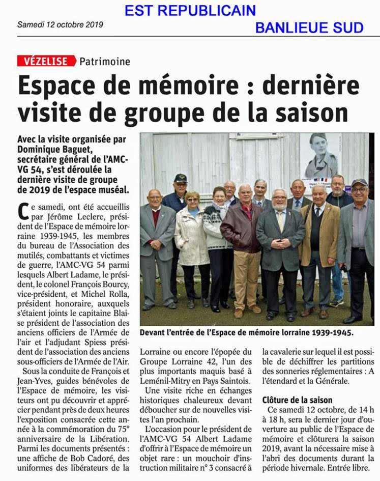 Une visite organisée par Dominique Baguet, secrétaire général de l’AMC-VG 54, et dernière visite de groupe de la saison 2019 !