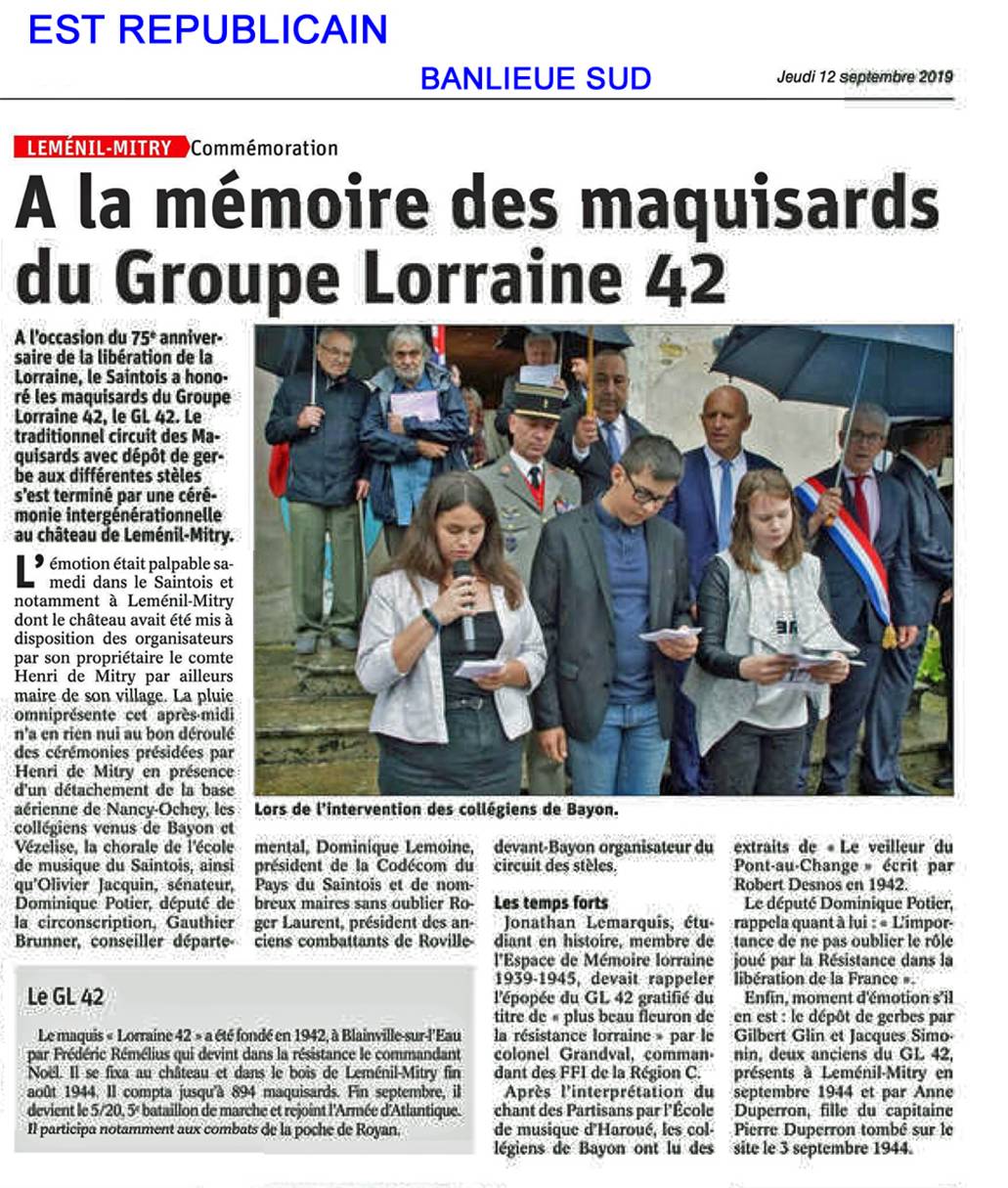 du GL 42, présents à Leménil-Mitry en septembre 1944, ainsi qu’Anne