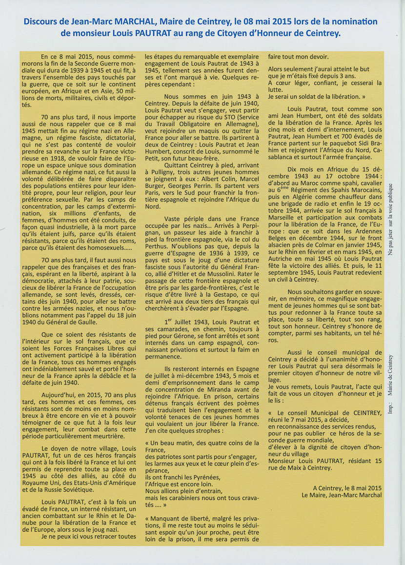C’est avec une très grande tristesse que nous avons appris aujourd’hui la disparition de notre ami Louis PAUTRAT de CEINTREY.