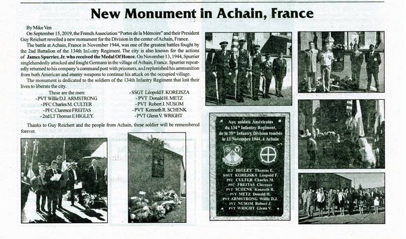 La nouvelle plaque pour le 134th Infantry Regiment inaugurée à Achain (Moselle)