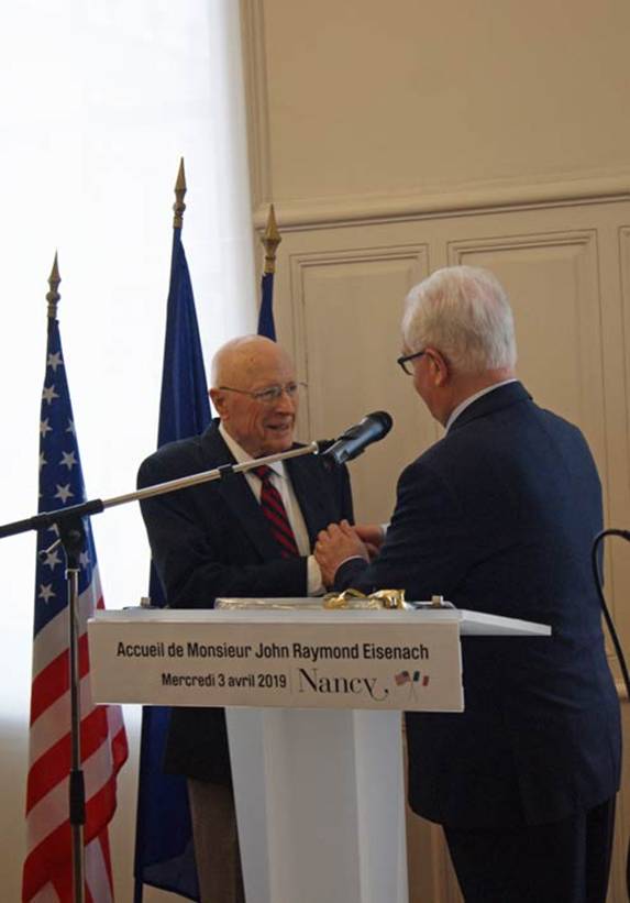 Claude Grandemange a remis la médaille d’or de la ville de Nancy à John R. Eisenach