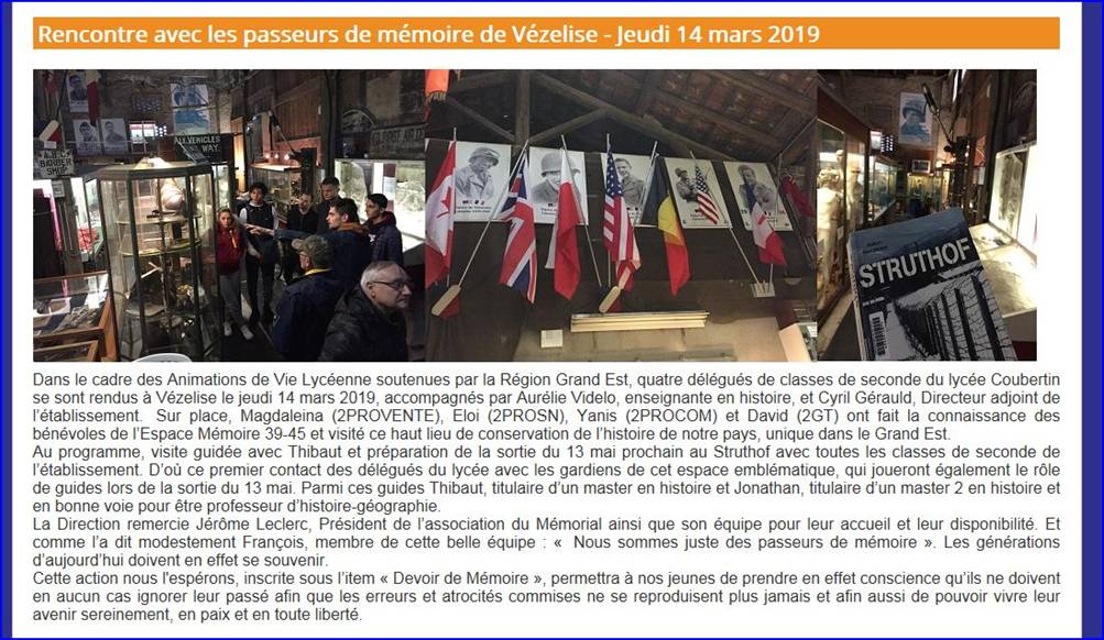 Le compte rendu de cette visite a été mis en ligne aujourd’hui sur le site du lycée.