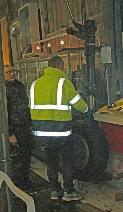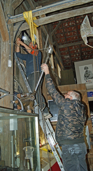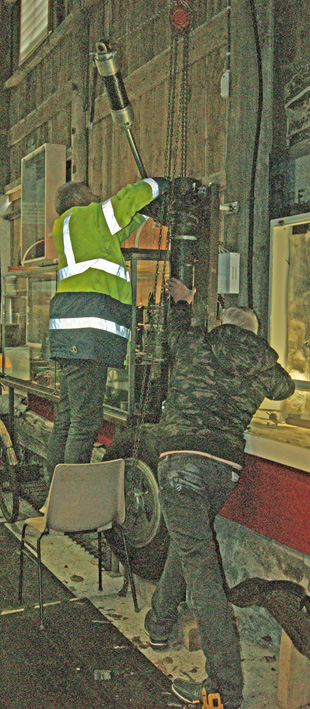 Trois heures plus tar!d, opération réussie, le train est en place, sangle et palan sont retirés !