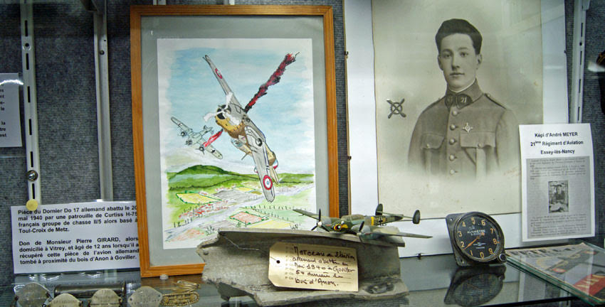 Témoin de la campagne de mai 1940, cette pièce d’un Dornier Do 17, abattu par la chasse française, offerte en janvier dernier par Monsieur Pierre Girard maintenant domicilié à Bordeaux.
