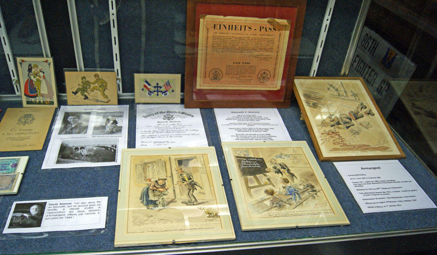 A coté des photos d’Isabelle Mangin, qui servit comme interprète de Patton, ces dessins d’Armangeol côtoient les photos d’époque de Kenneth Aimone.