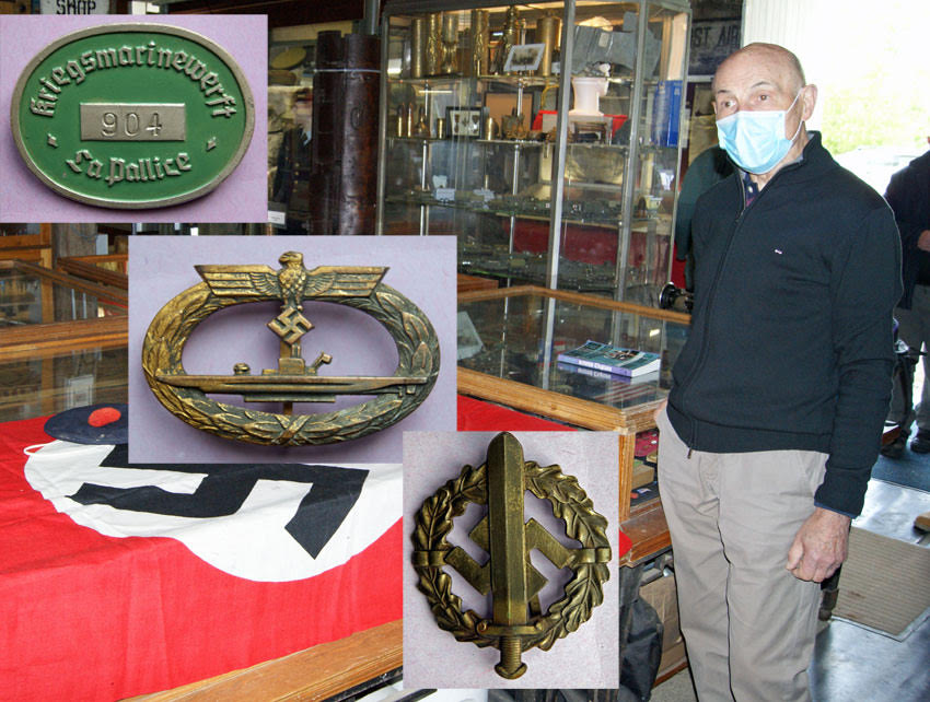 De ce moment historique, il ramènera quelques trophées qu’il conservera toute sa vie : son bâchi de marin, un drapeau du 3ème Reich, deux insignes nazis, et un badge d’accès à la base de la Pallice.