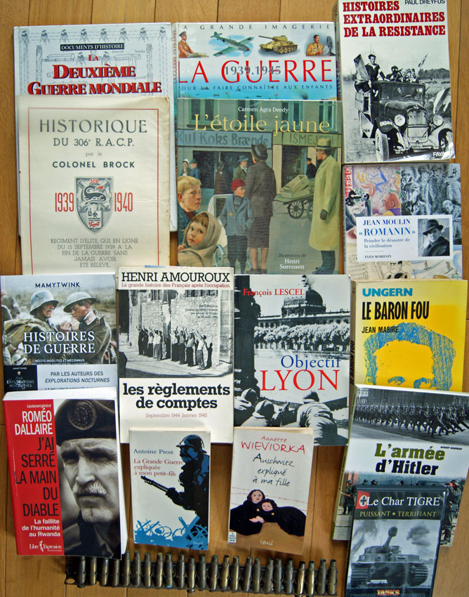 Depuis des années celui-ci a constitué une belle bibliothèque de livres consacrés aux deux guerres mondiales (dont des ouvrages des éditions Heimdal), ainsi que de belles collection de miniatures : blindés et avions….