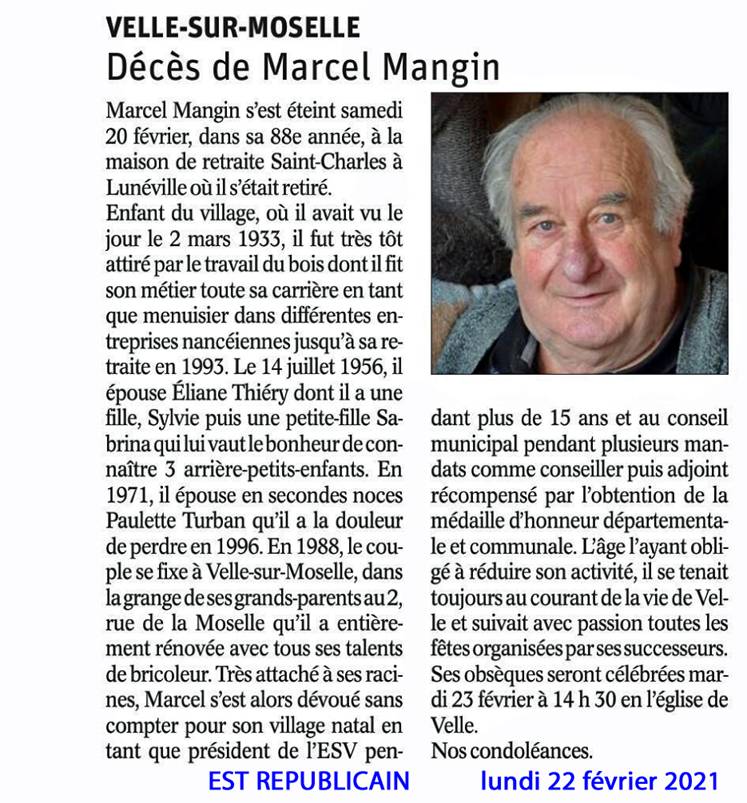 C’est avec énormément de tristesse que nous apprenons le décès de notre ami Marcel Mangin.