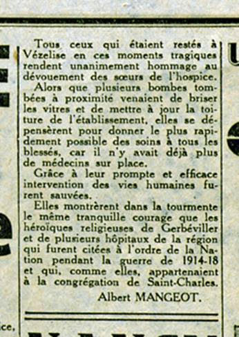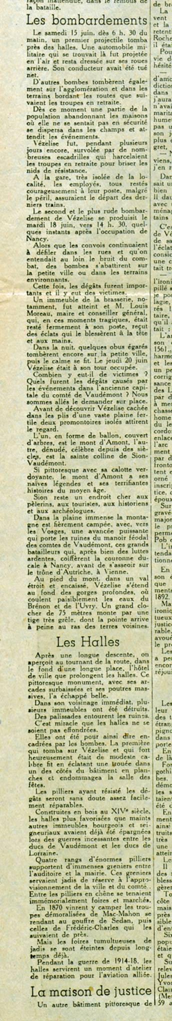 et civiles, des bombardements de Vézelise de juin 1940.