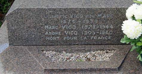 on trouve la tombe du André VICQ tué en 1940 à FLORENNES (Belgique !)