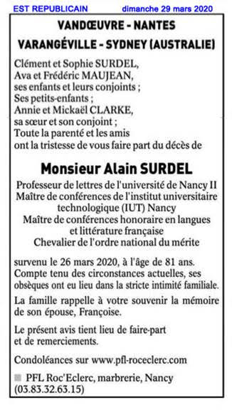 Disparition d'Alain SURDEL