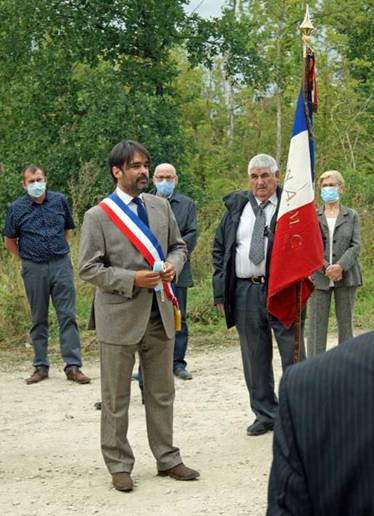 Dépôt de gerbe par Dominique Potier, accompagné par Martine Huot-Marchand et par les petits enfants d’Henri de Mitry Leménil-Mitry : photos Michel Lakomski |